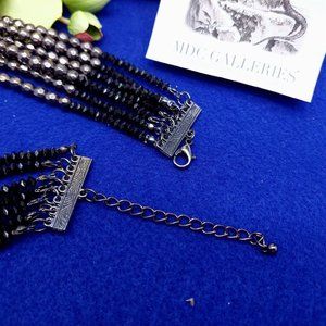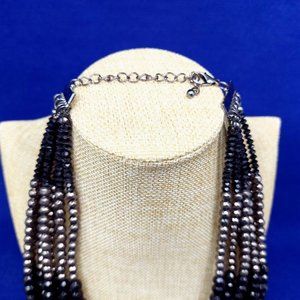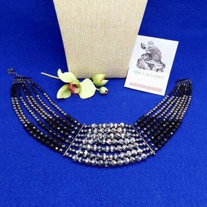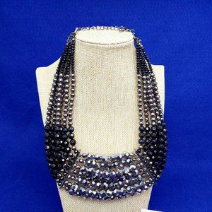Necklace Bib Collar 7 Strand Multi-facet Beads Silver Black Fashion Jewelry 16"