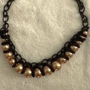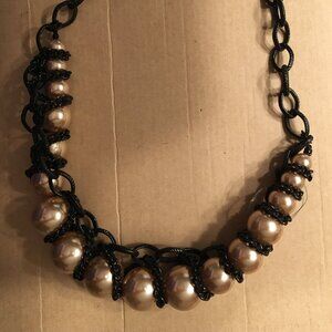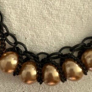 Necklace Bronze Simulated Pearls Encased in Unique Black Metal Setting