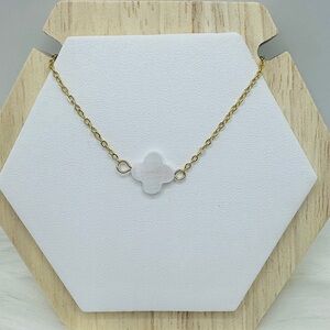 Faux Shell Flower shaped Necklace w/ Stainless steel Chain
