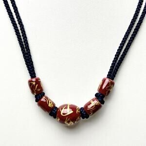 Pre-owned. Nice condition. Ceramic beads and braided cord are clean and in excellent condition. Well cared for with only light signs of handling. Overall a beautiful necklace ready for you to wear and enjoy. Please note, this jewelry piece is pre-owned and may have minor signs of age and use.