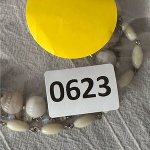 Necklace Choker Bead Opalite Glass Calcite Rock Acrylic on Gold Tone Chain 0623