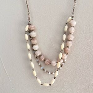 Choker Bead Necklace Opalite Glass Calcite Rock Acrylic on Gold Tone Chain 0623