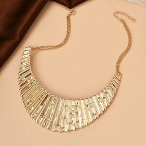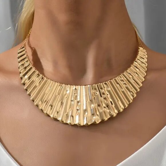 Necklace Collar Choker Bold Bib Gold Sexy Egyptian Ribbed Goddess Hollywood Glam