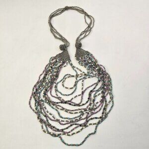 Necklace Costume Women Jewelry Multi Layered Gray Soft Colors Beaded