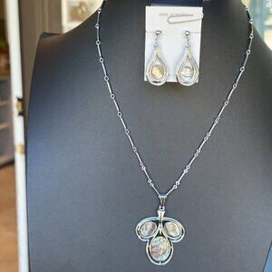 The shells are intricately shaped into oval pieces and accented with pearls for a touch of elegance. The set comes in shades of brown, making it a versatile addition to any outfit. Each piece is crafted with care and attention to detail, ensuring that you receive a high-quality product. This Pendant Necklace and Matching Earring Set is in Like New Clean Condition, no issues, original cardboard.