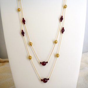 Necklace & Earring Set Gold Plate & Garnet Red Glass Beads 2 Strands NWOT M380