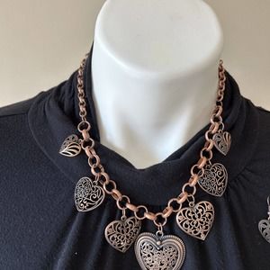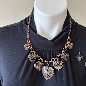 Necklace Earring Set Heart Statement Jewelry Adjustable Copper Beauty Accessory