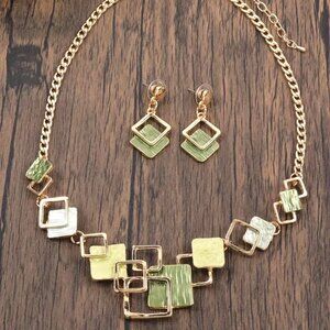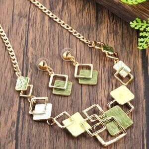 Necklace & Earrings 3pc Stylish Geometric Enamel Gold Chain Dangle Trendy Glam