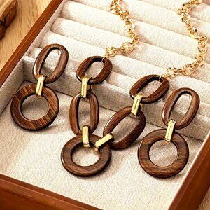 Necklace & Earrings Chunky Wood Set Statement Gold Bold Trendy Y2K Glam Stylish