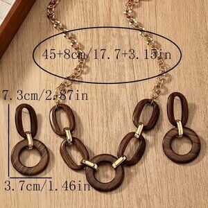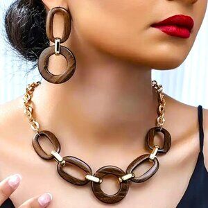 Chunky Necklace & Earrings Set Wood Statement Wooden Gold Bold Circle Y2K Glam