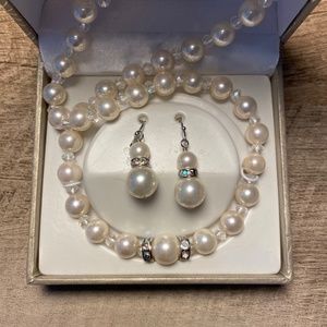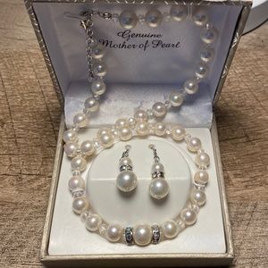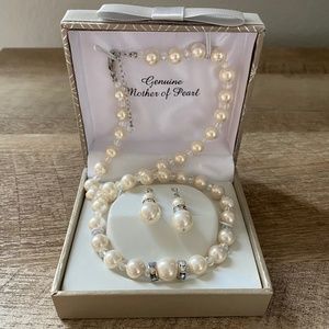Necklace & Earrings Set Genuine Creamy White Mother of Pearl & Crystal