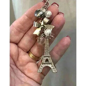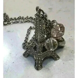 Necklace Eiffel Tower Heart Bow Beaded Pendant Chunky Coquette Cottagecore Retro
