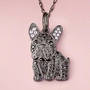 Necklace Frenchie Bulldog Rhinestone Pendant Chain Glam Dog Sparkly Stylish Cute