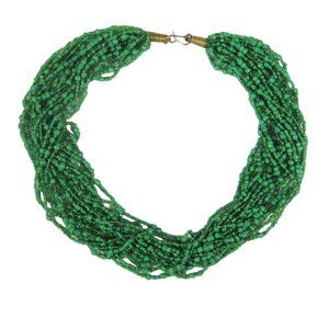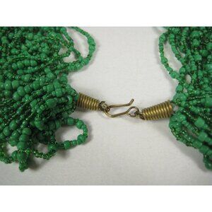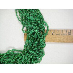 Necklace Glass Beaded Jewelry 22 inch 20 Strands Green Beads Statement