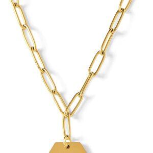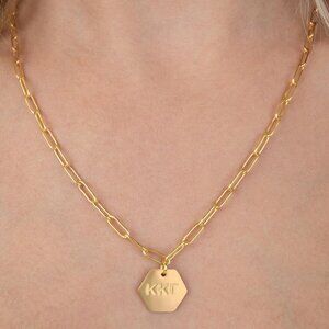 Features: This eye-catching paperclip chain is 18 inches long with a 15mm Greek letter pendant, all in gorgeous 18k gold-dipped stainless steel. The sleek, modern design makes it perfect to wear to sorority events, parties, or even at work. Lightweight and durable, it shines brilliantly from every angle!