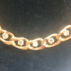 This vintage 1980's-90's elegant gold-tone link chain necklace features sparkling rhinestone accents throughout, adding a touch of sophistication to any ensemble. The lobster clasp ensures secure and easy wear. Ideal for both formal and casual settings, this necklace is a versatile addition to any jewelry collection.
