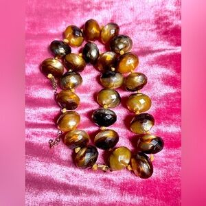 Necklace Hand knotted Faux Acrylic Tigers Eye Facets Choker Chunky Beads 4099