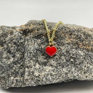 Necklace Heart Pendant Dainty Chain 18” Red Enamel Gold Tone Mini Valentine Teen