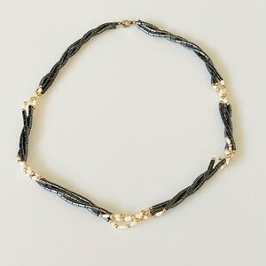 Necklace Hematite Beads & Freshwater Pearl 23” Multi Strands VTG