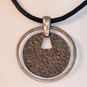 Large Hammered Silver Tone Metal Pendant on a Braided Black Leather Cord Statement Necklace, it has a Lobster Closure. Perfect for a Holiday gift Christmas Hanukkah Valentine's Day Mother’s Day Graduation Birthday Anniversary or any day. It is a unique gift anyone would love to receive and a great item to add to your jewelry collection