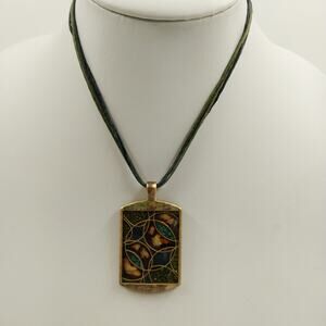 Necklace Liz Sophia Multicolor Stained Glass & Gold Tone Pendant in Corded Chain