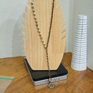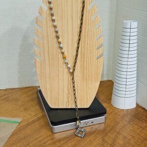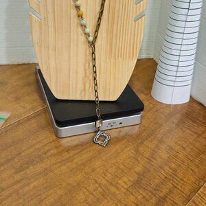 Stone and brass tone, dangle necklace