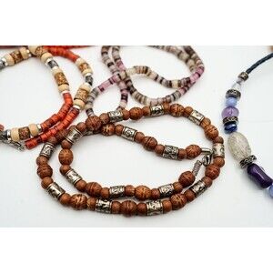 Discover a collection of nine eclectic necklaces, each piece designed to add a touch of bohemian charm to your ensemble. These unbranded necklaces feature a mix of wooden beads and glass accents, creating a unique and vibrant array of colors that complement any outfit. With their beaded style, they embody a laid-back yet sophisticated aesthetic, perfect for those who appreciate jewelry with a story. Crafted with care, these necklaces are versatile enough to wear on a casual day out or to enhance your evening look. The multicolor palette allows for effortless coordination with a range of clothing colors and patterns, making them an essential accessory for any jewelry collection.