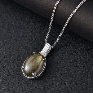 Upgrade your jewelry collection with this Karis Malagasy labradorite pendant necklace in durable metal. Featuring an oval labradorite, this elegant gemstone pendant necklace for women radiates natural beauty. Perfect for adding a bold statement to your style.