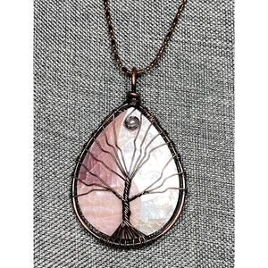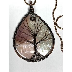 Necklace Mother of Pearl Tree of Life Wire Work Cooper Rose Gold Tone Chain 23”