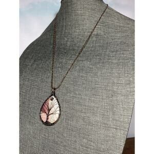 Necklace Mother of Pearl Tree of Life Wire Work Cooper Rose Gold Tone Chain 23”