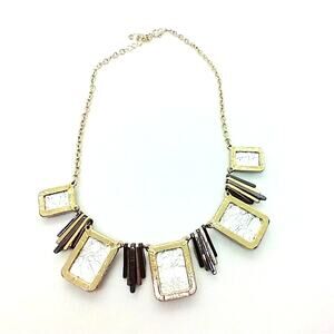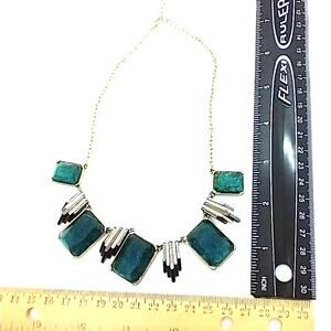 Necklace Opalescent Teal Gems Metal Spacers Gold Tone Chain Lobster Claw Clasp