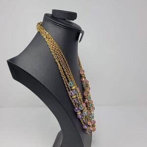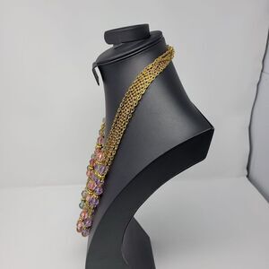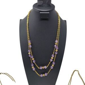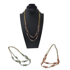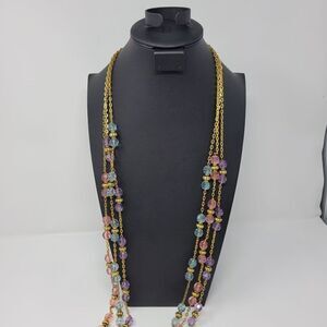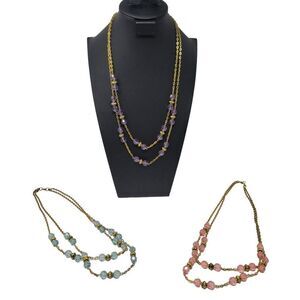 Necklace Opera Gold Tone Chain Pastel Beaded Pink Blue Purple 3pc Set Layered