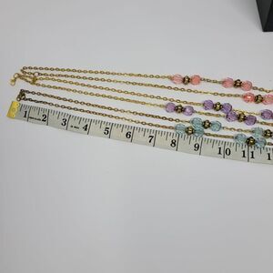Necklace Opera 28" Gold Tone Chain Pastel Beaded Pink Blue Purple 3pc Set