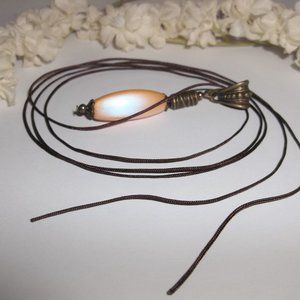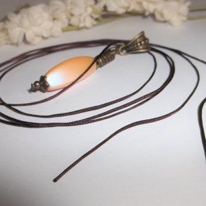 This pretty beaded boho style necklace set is brand new NWT & handmade by me - wvluckygirl. Handcrafted with an aurora borealis AB orange peach colored acrylic bead. Ab means it flashes other colors in the light. The ab finish flashes the colors of blue, purple, pink, yellow, and green. It has antique brown bronze toned costume jewelry beads. The pendant and decorative bail measure 2 3/8 inches tall & 3/8 inch wide. Comes with a 36 inch brown nylon rope cord string that you can tie to any length you want to wear it. Double it up around your neck and wear it as a short layered look beaded choker. Wear it long with other necklaces to get that trendy stacking look. You could even change up your look by adding it to a necklace you already own.