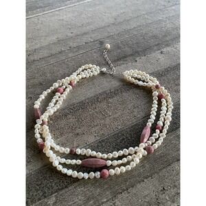 Necklace Pearls Rhodonite Three Strands 17”+3” 925 Findings Artisan.