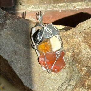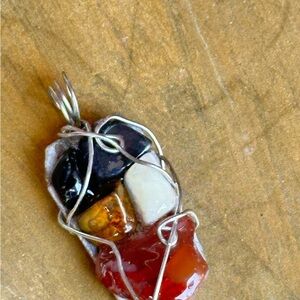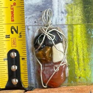 Necklace Pendant, Handmade assemblage Wire Wrapped real Stones Resin Set 4300 G