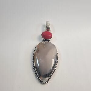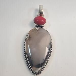 Necklace Pendants Dendritic Agate Red Coral Handmade Jewelry in Silver Setting