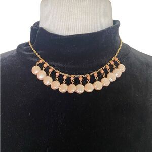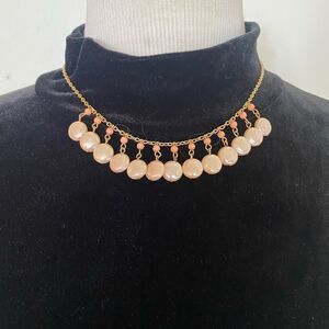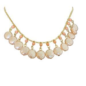 Necklace Pink faux pearl with coral colored beads on gold tone chain