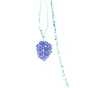 A stunning purple grape cluster necklace with 1/2" beads on an 18" silver chain. Perfect for wine lovers and stylish occasions.