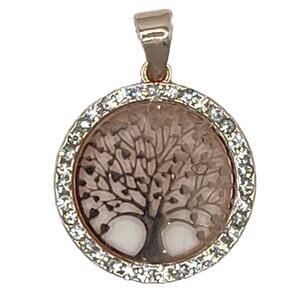 Rose Gold Rhinestone Tree of Life Necklace 18"