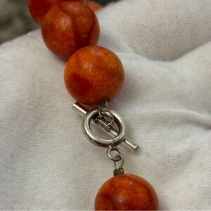 Beautiful Necklace made of Carnelian Agate semi precious stone and red orange round beads 22” inches long. Sterling silver metal lock. Custom made.