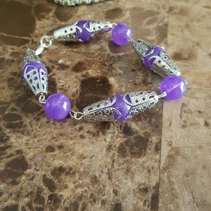 Purple and silver toned necklace and bracelet