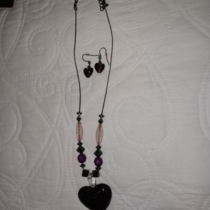 Necklace and earring set with heart detail. Necklace length is 18" adjustable. Earrings are 1"