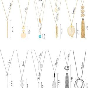 Product details Material Metal Metal type Alloy Chain type Rolo About this item Package include: package comes with 12 pieces long pendant necklaces in different colors and styles, more ch