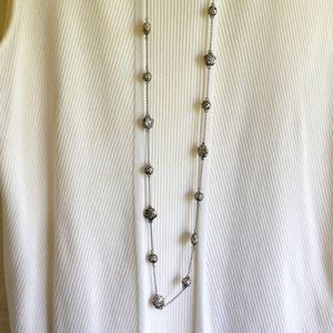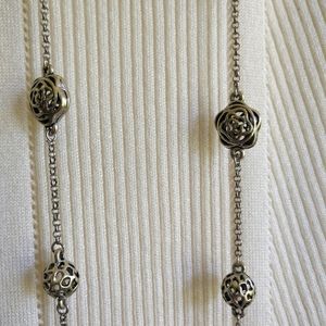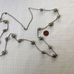 Necklace Silver Long Statement Chain Bauble Ball Vintage