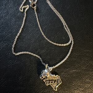 Necklace Silver Tone Texas State and long horn Charm 21"