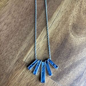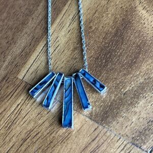 Necklace Silver Toned Metal With 5 Rectangular Faux Blue Stones