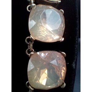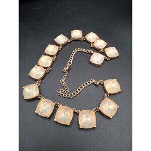 This vintage necklace exudes timeless charm, featuring a gold-tone chain adorned with luminous faceted opalescent faux glass like stones. A sophisticated collectible accessory.