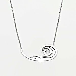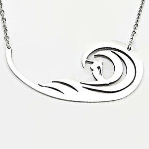 Necklace Surfer Ocean Wave Scene Stainless Steel 18"