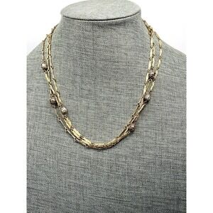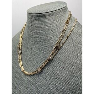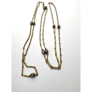 Necklace Vintage Caged Pearls Gold Tone Metal Beads Linked 60”